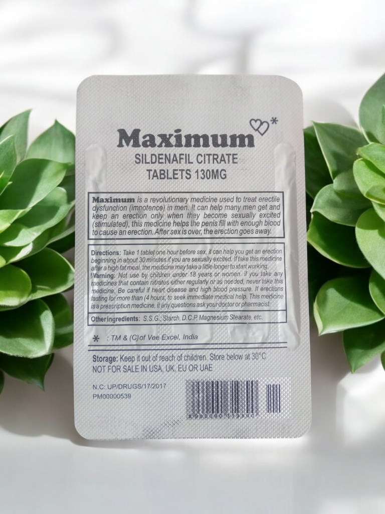 Maximum Sildenafil Citrate Tablets 130mg are expertly formulated to help improve stamina, endurance, and overall performance. Enriched with Sildenafil Citrate, these tablets enhance energy, blood circulation, and physical vitality — helping you stay active and confident for longer.